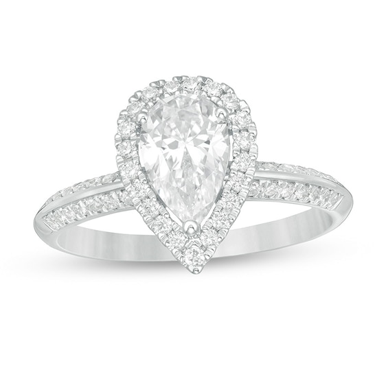 Previously Owned - 1 CT. T.w. Composite Pear-Shaped Diamond Frame Engagement Ring in 14K White Gold