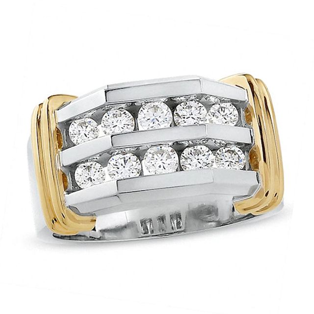 Men's Diamond Double Row Band (1-1/2 ct. t.w.) in 10k Two-Tone Gold