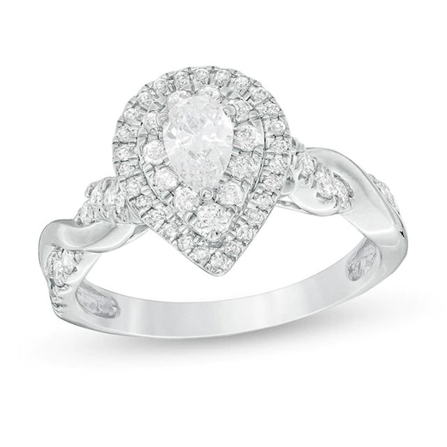 Vera Wang Love Collection 1-5/8 CT. T.w. Pear-Shaped Diamond Double Frame Twist Engagement Ring in 14K White Gold