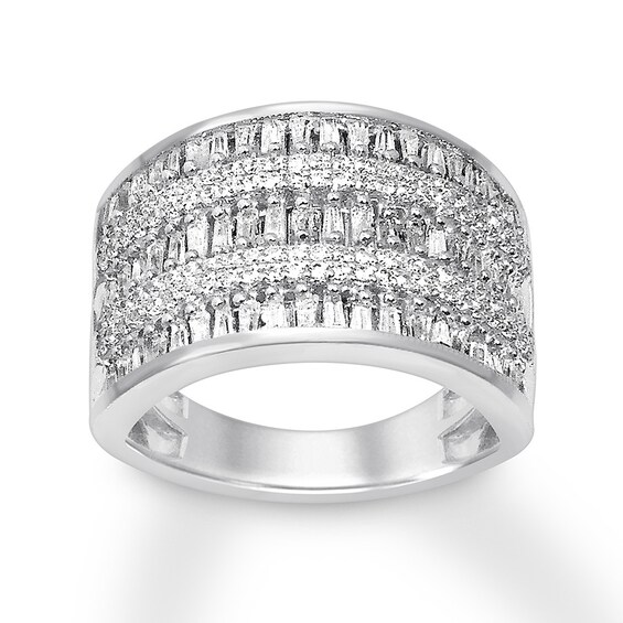Previously Owned Diamond Ring 3/4 ct tw Round & Baguette-cut 10K White Gold Size 8.75