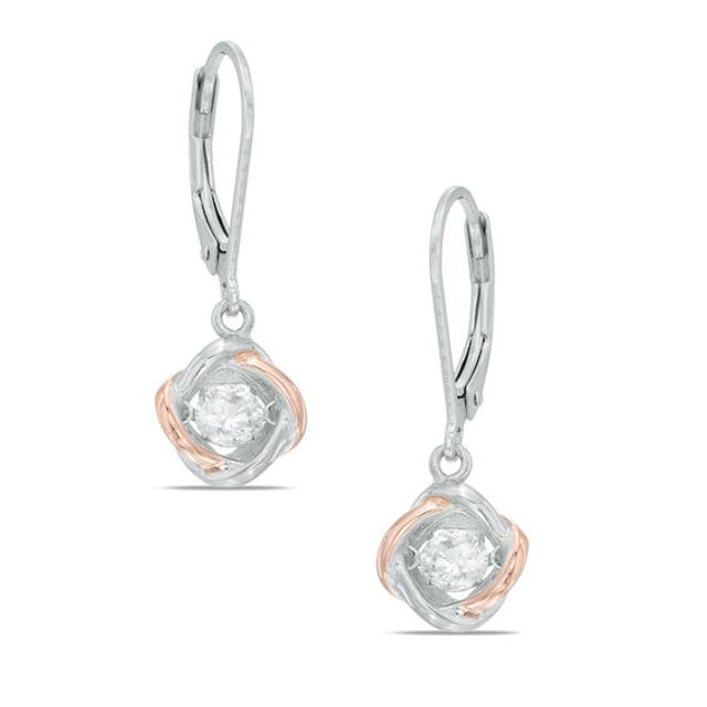 Previously Owned - Lab-Created White Sapphire Drop Earrings in Sterling Silver and 18K Rose Gold Plate
