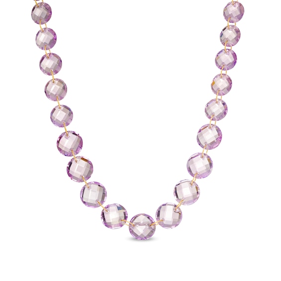 Checkerboard Rose de France Amethyst Graduated Bead Necklace with a 10K Gold Clasp