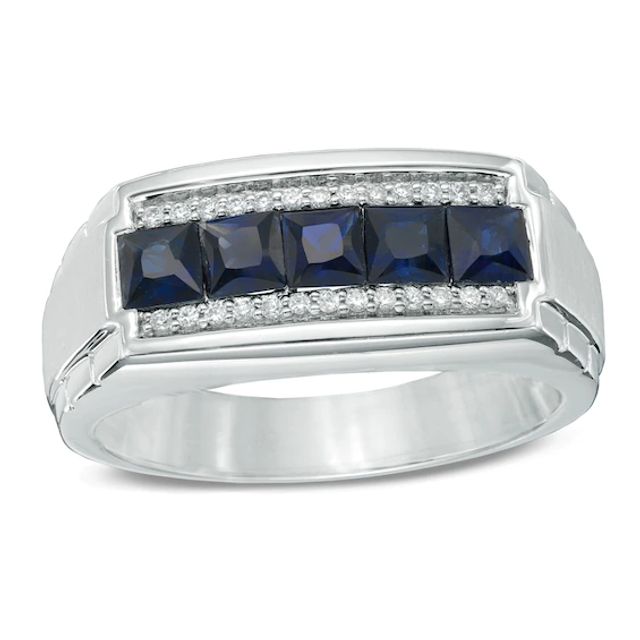 Men's Square-Cut Blue Lab-Created Sapphire & Diamond Ring 1/4 ct tw 10K White Gold