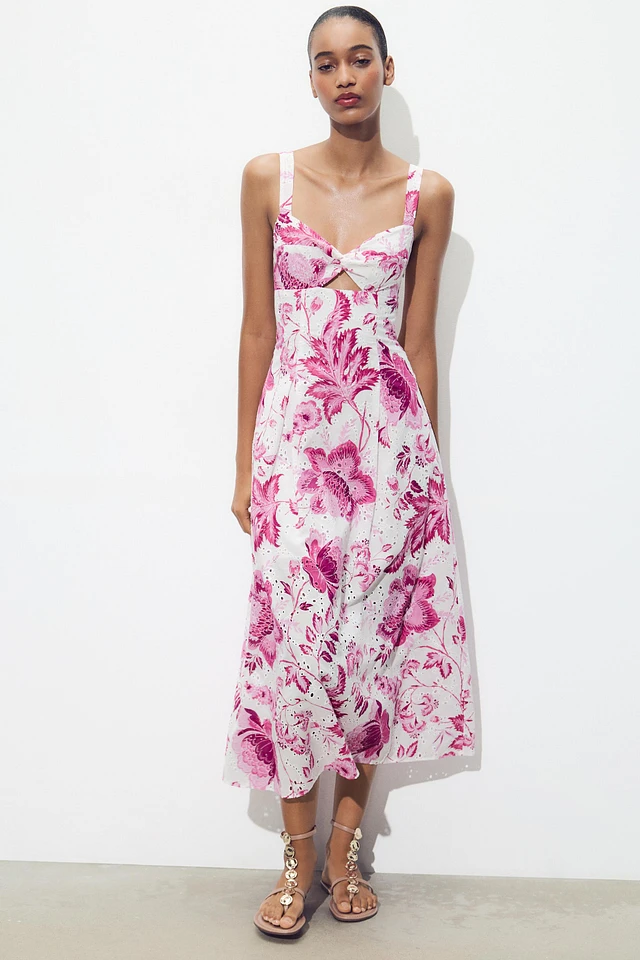 PRINTED DRESS WITH OPENWORK EMBROIDERY