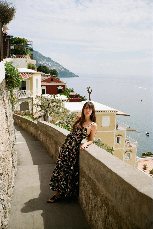PRINTED MIDI DRESS WITH OPENWORK EMBROIDERY