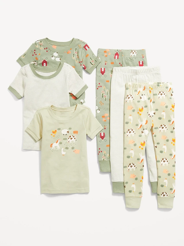 Printed Snug-Fit Pajama 6-Piece Set for Toddler & Baby