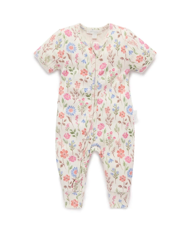Purebaby Baby Girls Short Sleeve 2 Pack Zip Coverall