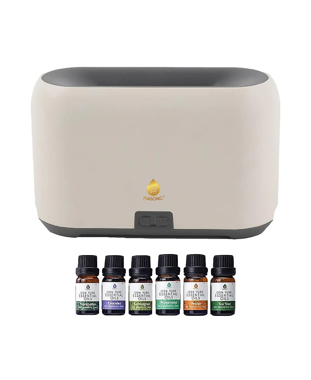 Pursonic Aromatherapy Usb Diffuser & Essential Oil Set- Top 3 Oils with 2 Mist Settings Changing Ambient Light Settings