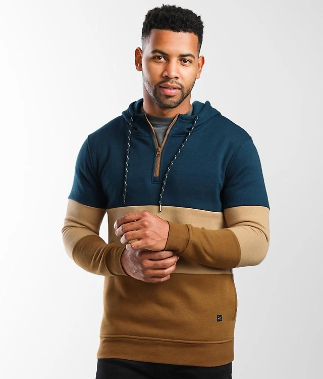 Color block fleece lined sweatshirt Front pouch pocket Model Info: Height: 6'2" | Chest: 37" | Waist: 34" | Hip: 42" | Wearing Size: Medium