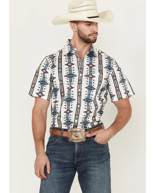 RANK 45® Men's Weststamp Southwestern Geo Print Short Sleeve Button-Down Stretch Western Shirt