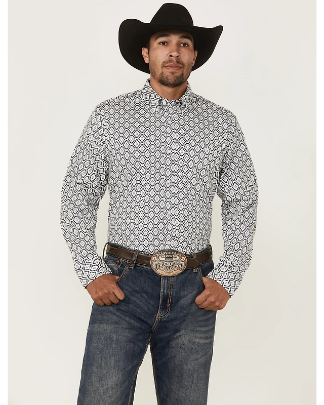 RANK 45® Men's Stampede Diamond Geo Print Long Sleeve Button-Down Stretch Western Shirt