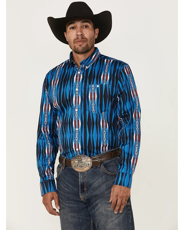 RANK 45® Men's Lockwood Geo Striped Print Long Sleeve Button-Down Stretch Western Shirt