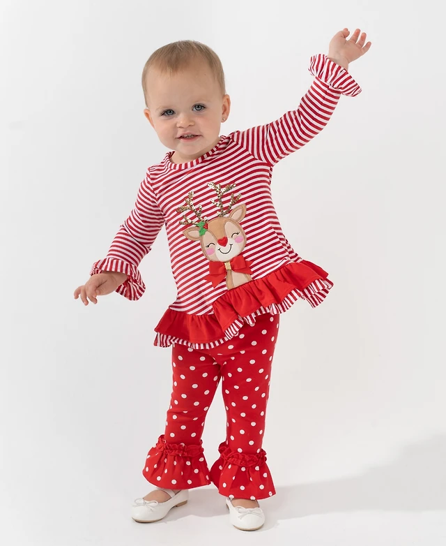 Rare Editions Baby Girl 2-Piece Reindeer Applique Top and Polka Dots Leggings Set