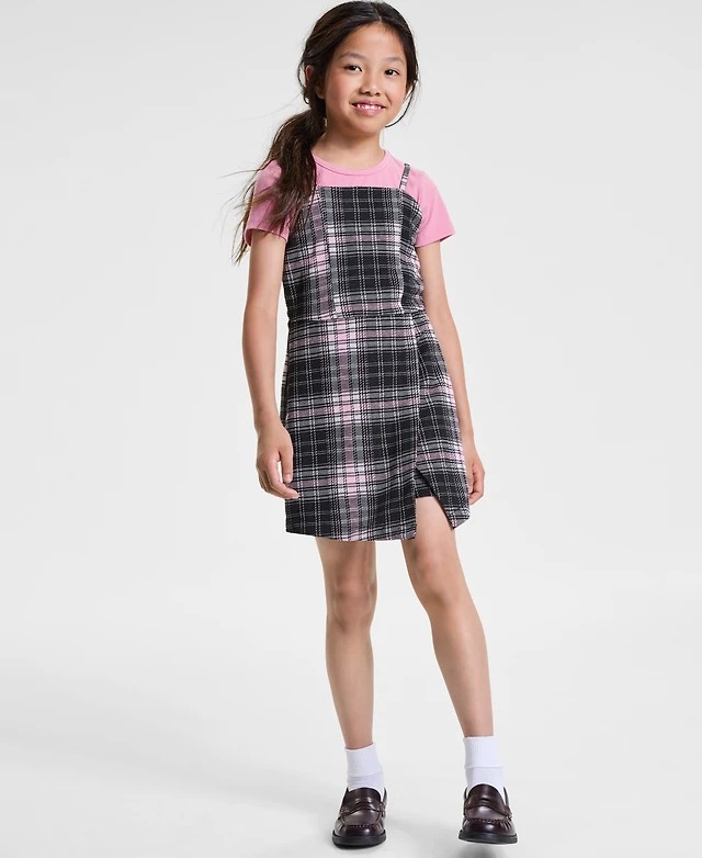 Rare Editions Big Girls Rib T-Shirt & Plaid Shorts Jumper, 2 Piece Set