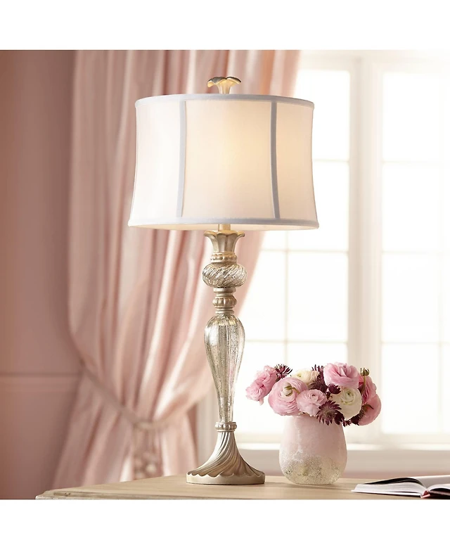 Regency Hill Alyson Traditional Buffet Table Lamp 32 3/4" Tall Mercury Glass Silver Champagne White Drum Shade for Bedroom Living Room Bedside Ho