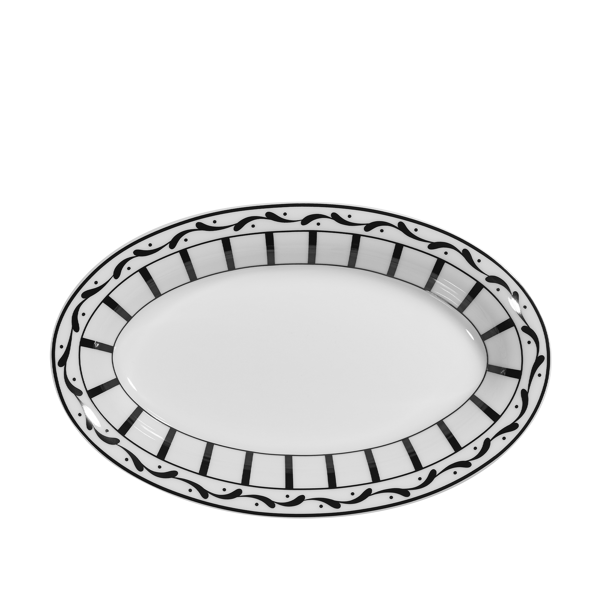 Relish dish in extra fine Limoges porcelain with black and white stripes. 100% Limoges porcelain. Made in France