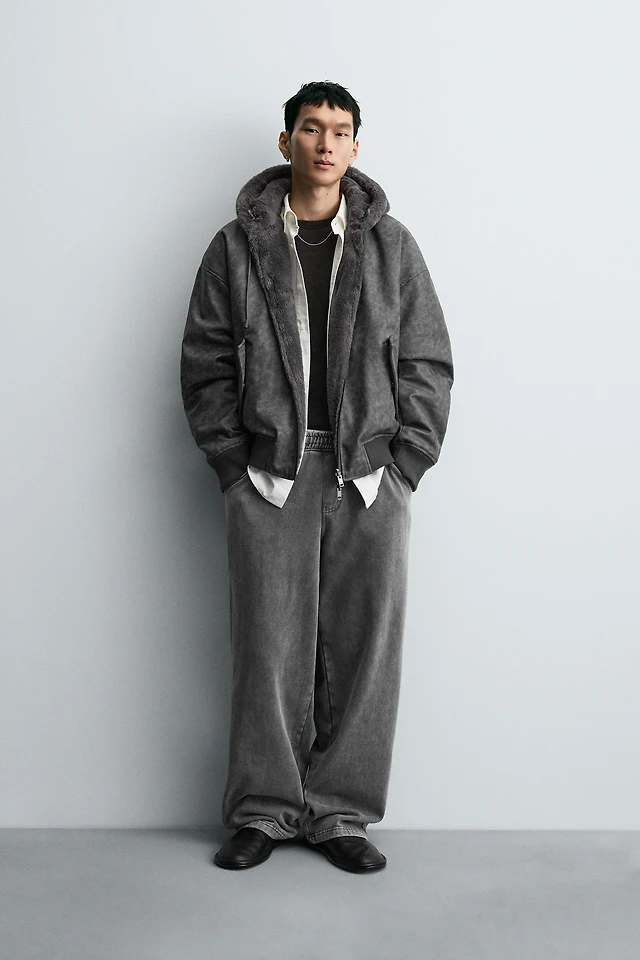 REVERSIBLE FAUX LEATHER BOMBER JACKET