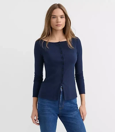 Ribbed Boatneck Button Top