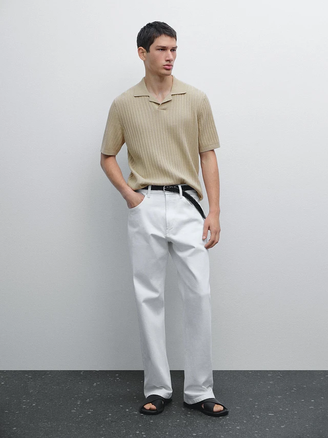 Ribbed knit polo shirt