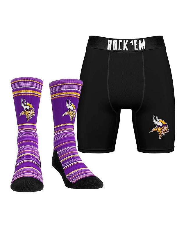 Rock 'Em Men's Minnesota Vikings Primary Crew Socks Boxer Briefs Combo Pack