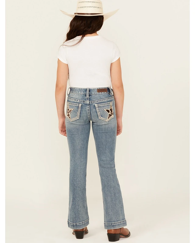 Rock & Roll Denim Girls' Medium Wash Cow Pocket Stretch Bootcut Jeans