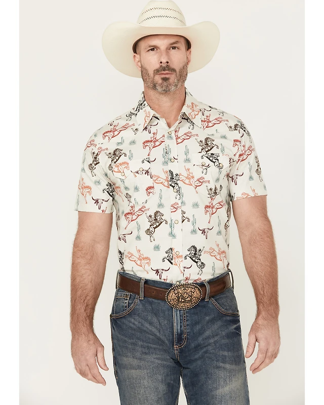 Rock & Roll Denim Men's Bronc Print Short Sleeve Snap Stretch Western Shirt