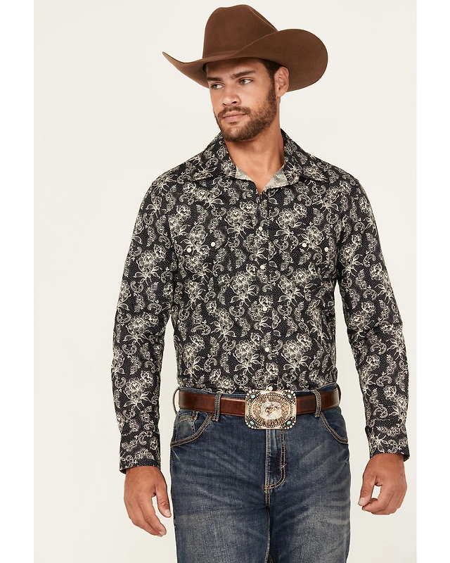 Rock & Roll Denim Men's Floral Print Long Sleeve Snap Stretch Western Shirt
