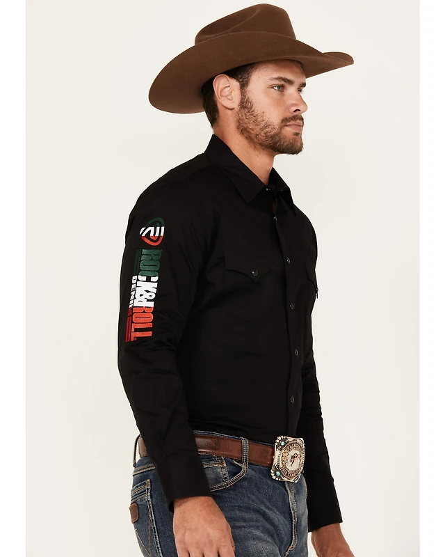 Rock & Roll Denim Men's Mexico Logo Long Sleeve Western Snap Shirt