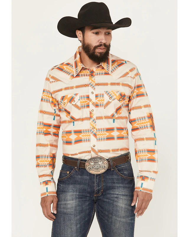 Rock & Roll Denim Men's Modern Fit Southwestern Print Long Sleeve Snap Stretch Western Shirt