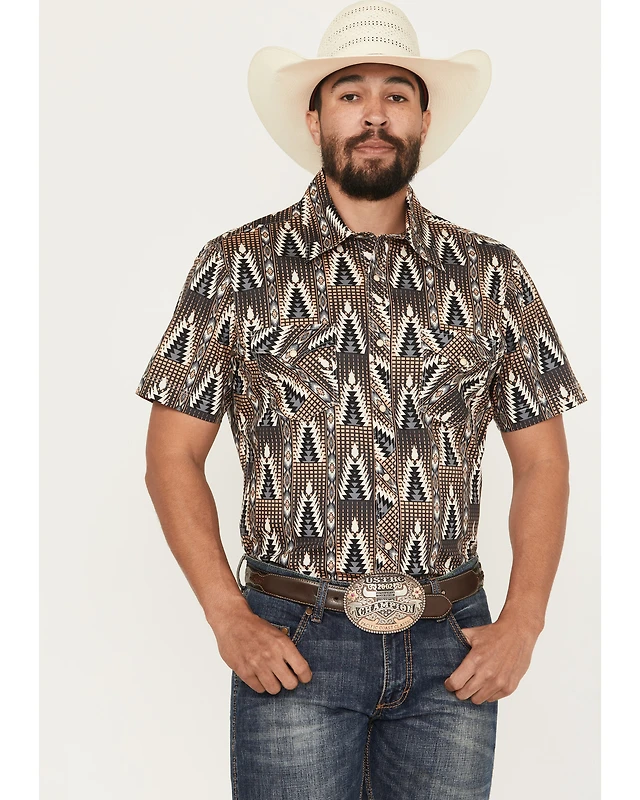Rock & Roll Denim Men's Southwestern Print Short Sleeve Snap Stretch Western Shirt