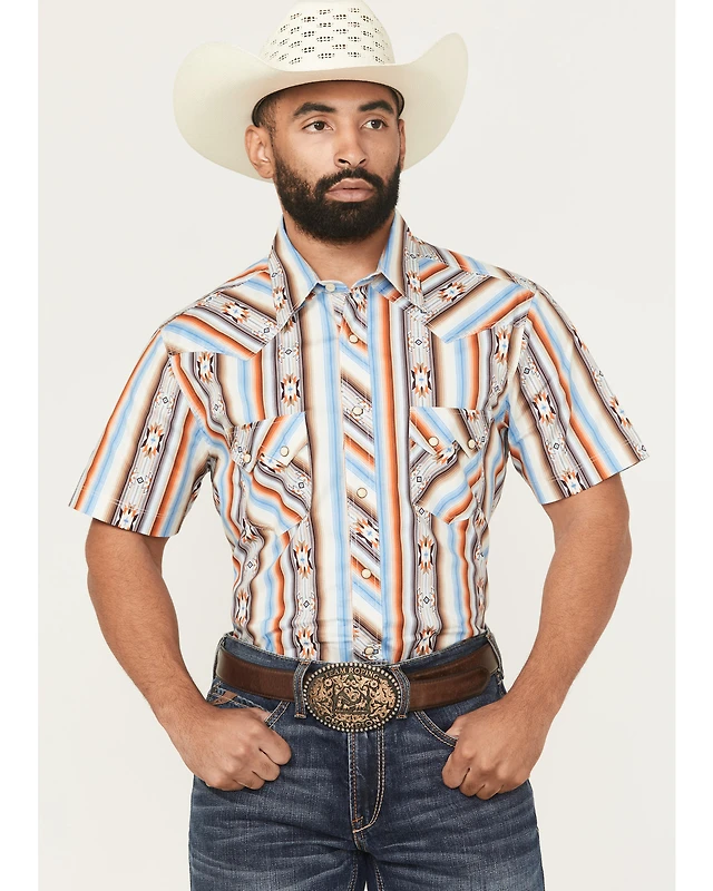 Rock & Roll Denim Men's Southwestern Striped Print Short Sleeve Snap Stretch Western Shirt
