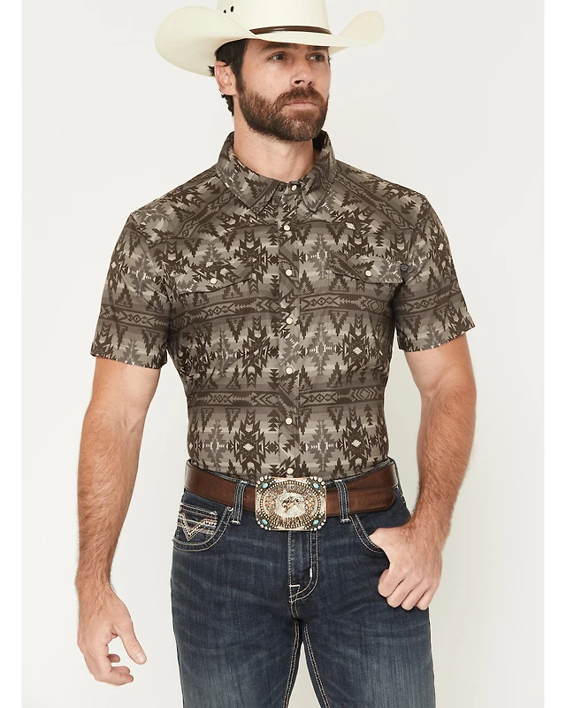Rock & Roll Denim Men's Tek Southwestern Print Short Sleeve Snap Stretch Western Shirt