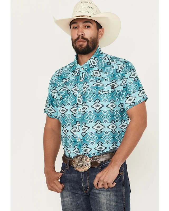 Rock & Roll Denim Men's Tek Southwestern Print Short Sleeve Snap Western Shirt