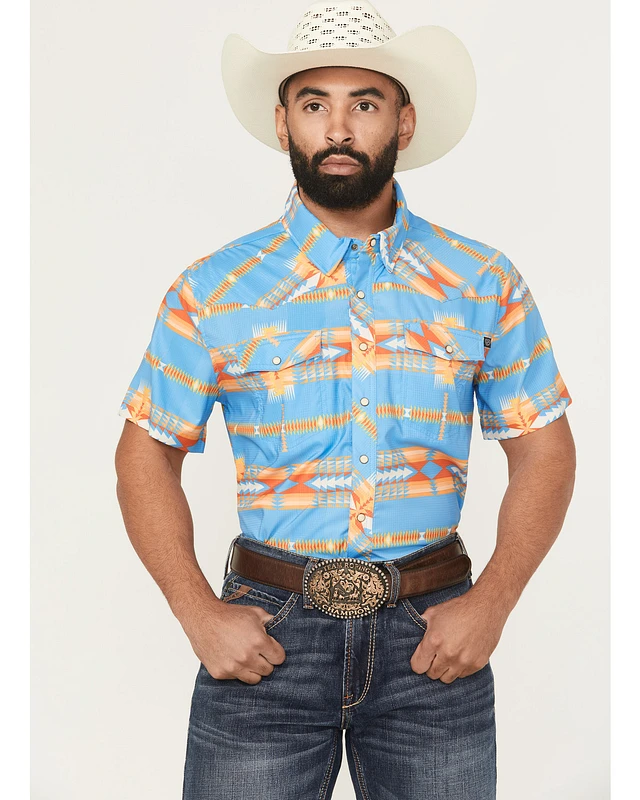 Rock & Roll Denim Men's Tek Southwestern Print Short Sleeve Snap Stretch Western Shirt