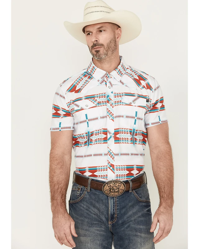 Rock & Roll Denim Men's Tek Southwestern Striped Short Sleeve Pearl Snap Western Shirt