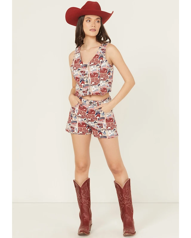 Rock & Roll Denim Women's High Rise Americana Print Stretch Shorts