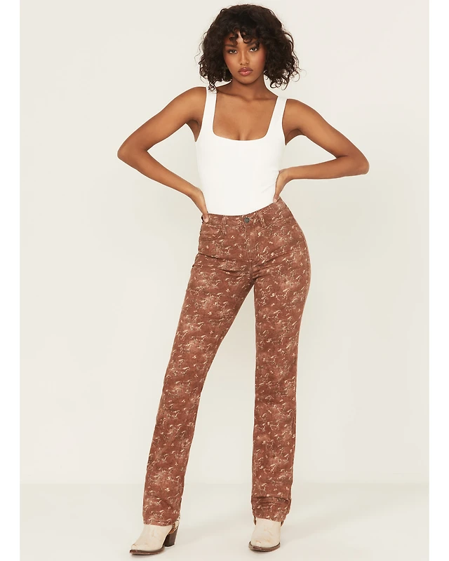 Rock & Roll Denim Women's Horse Print High Rise Bargain Bootcut Stretch Jeans