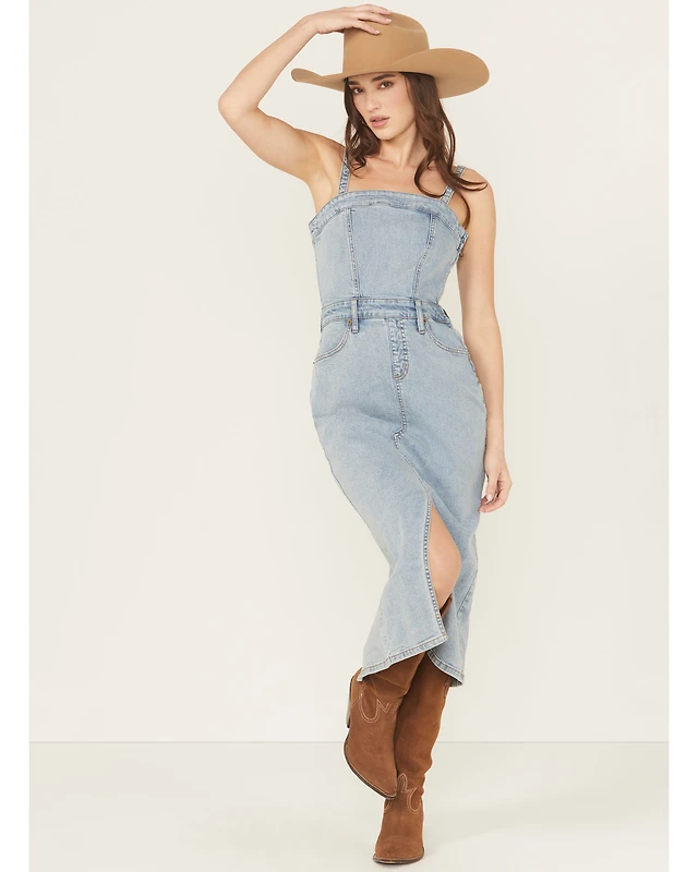 Rock & Roll Denim Women's Light Wash Detachable Strap Midi Dress