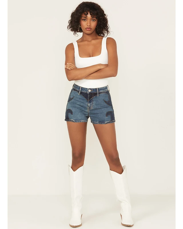 Rock & Roll Denim Women's Medium Wash High Rise Two-Toned Shorts
