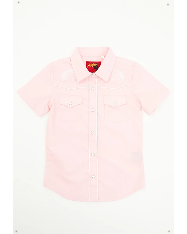 Rodeo Clothing Girls' Horse Embroidered Short Sleeve Pearl Snap Western Shirt