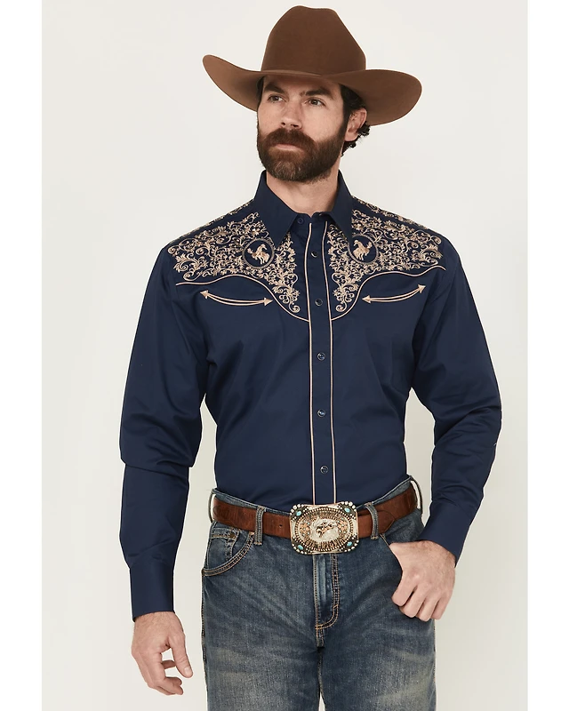 Rodeo Clothing Men's Embroidered Long Sleeve Pearl Snap Western Shirt
