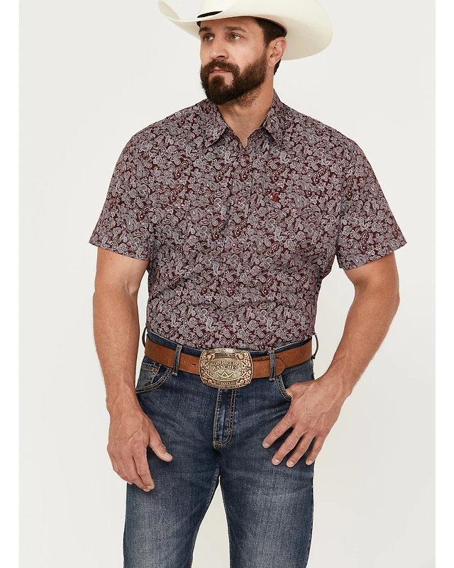 Cowboy Hardware Men's Paisley Print Short Sleeve Snap Stretch Western Shirt