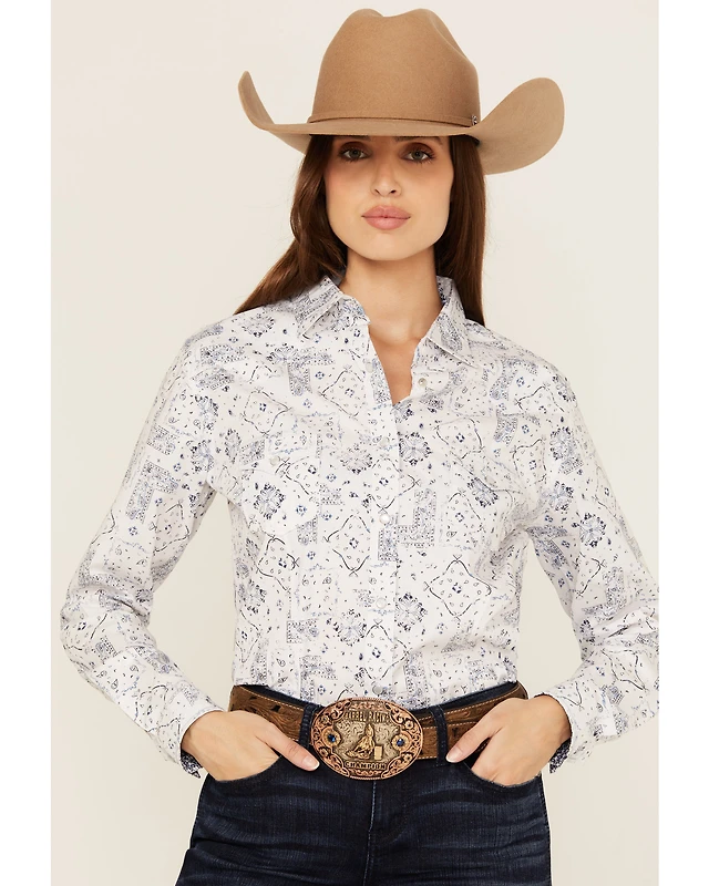 Rough Stock by Panhandle Women's Bandana Print Long Sleeve Pearl Snap Stretch Western Shirt