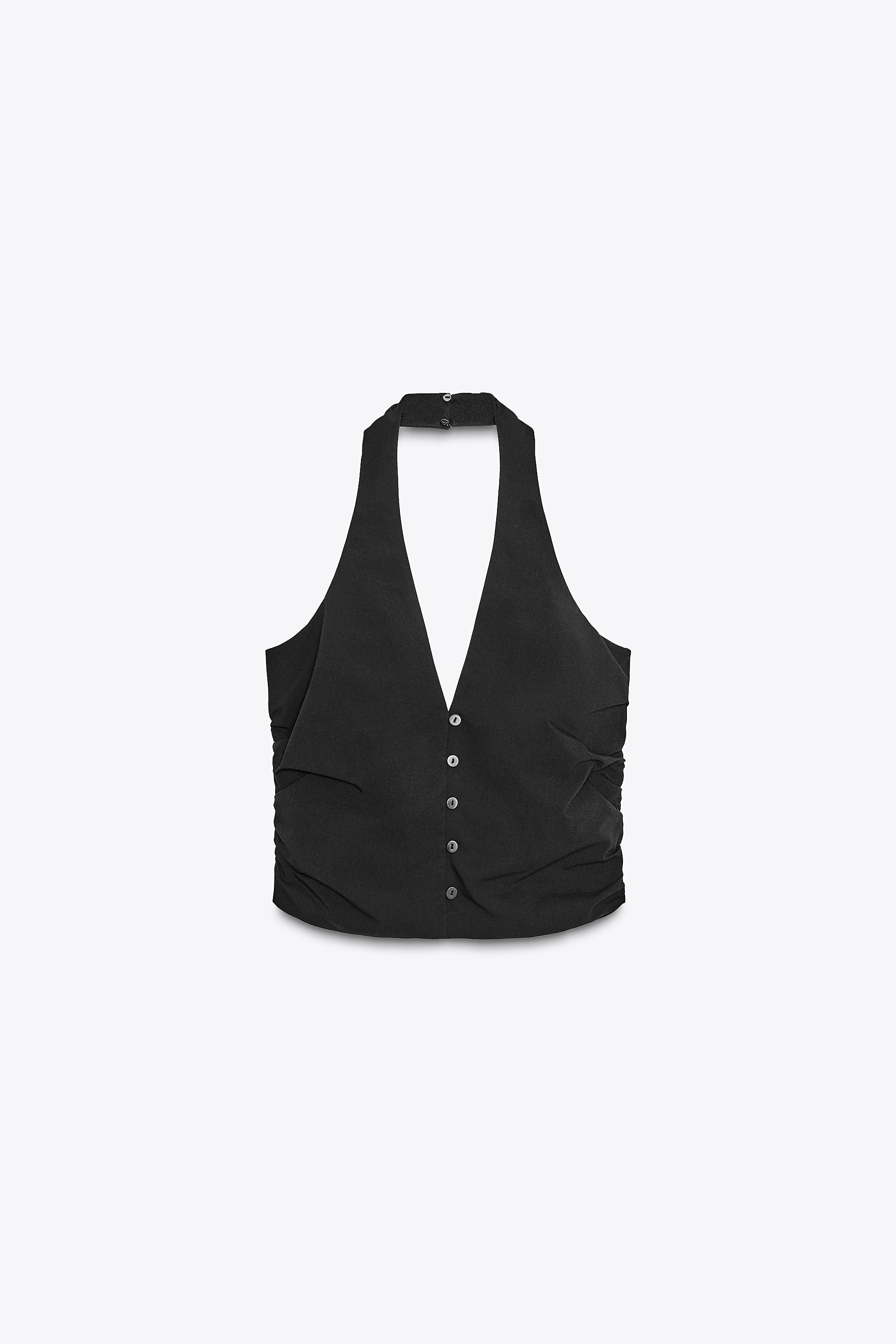 Silence + Noise Esme Cropped Denim Halter Vest Top