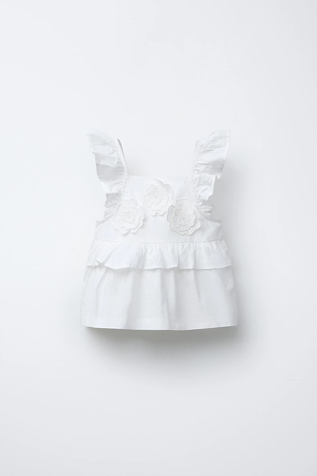 RUFFLED FLORAL EMBROIDERED ROMPER