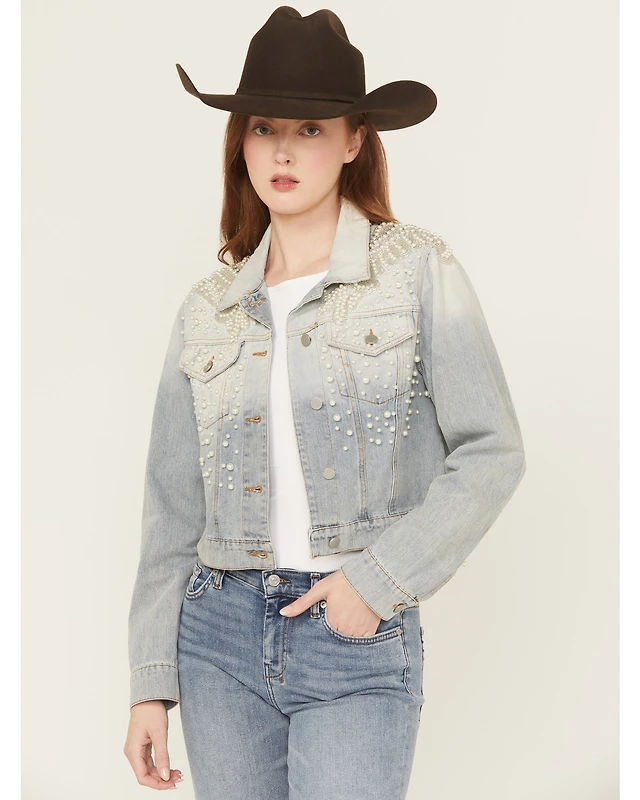 Saints & Hearts Women's Light Wash Embellished Denim Jacket