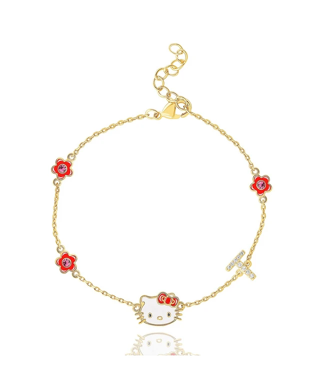 Sanrio Hello Kitty Womens Yellow Gold Plated Letter Bracelet - Cubic Zirconia Initial Bracelet - Officially Licensed