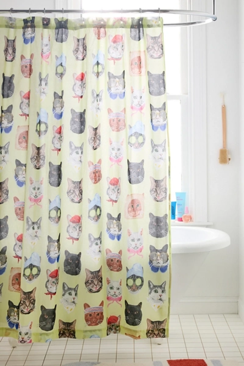 - - Sassy Cats Patterned Shower Curtain from UO Home