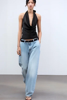 ASYMMETRIC SATIN EFFECT LACE TOP