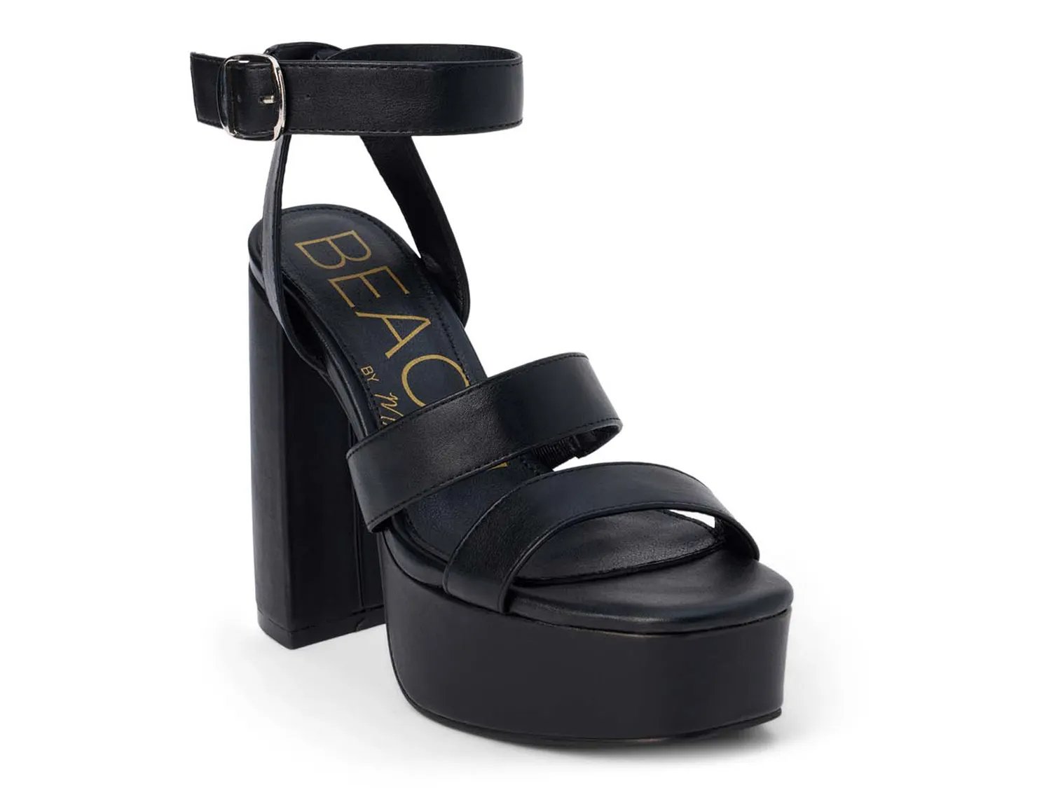 Set your fashion standards above par with the BEACH by Matisse Savage platform sandal. Metallic upper adds a polished look to this ankle strap sandal boasting of a vegan construction for durability and fashioned with a square open toe for a modern flair.